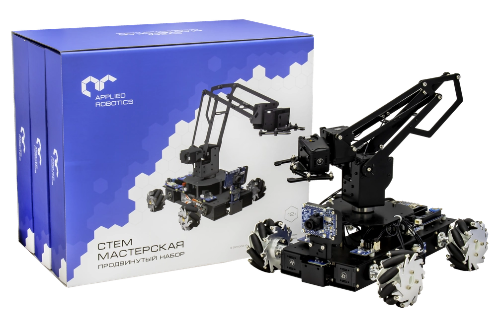 Образовательный набор для изучения многокомпонентных робототехнических систем и манипуляционных роботов "Образовательный робототехнический комплект "СТЕМ Мастерская". Продвинутый" предназначен для изучения робототехнических технологий, основ информационных технологий и технологий промышленной автоматизации, мобильных платформ, а также технологий прототипирования и аддитивного производства.