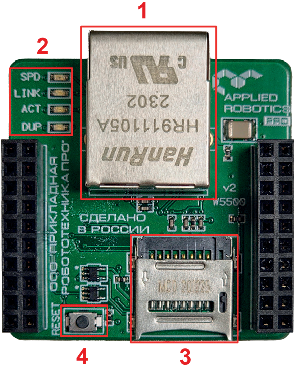 - Кнопка для перезагрузки модуля.
