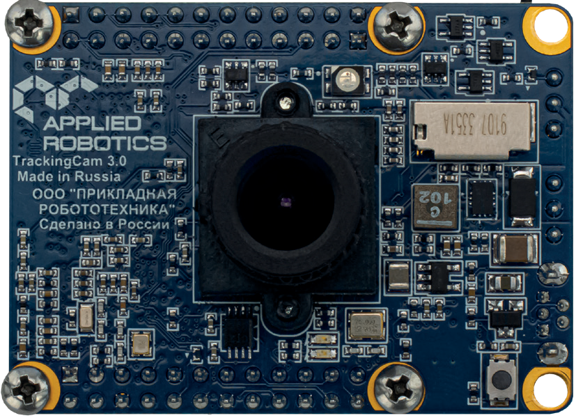 Модуль технического зрения TrackingCam v3 представляет собой единое устройство, состоящее из вычислительного модуля – микропроцессора с блоками оперативной и энергонезависимой памяти, размещенными на одной плате с микропроцессором, интегрированной фоточувствительной матрицей и объективом.