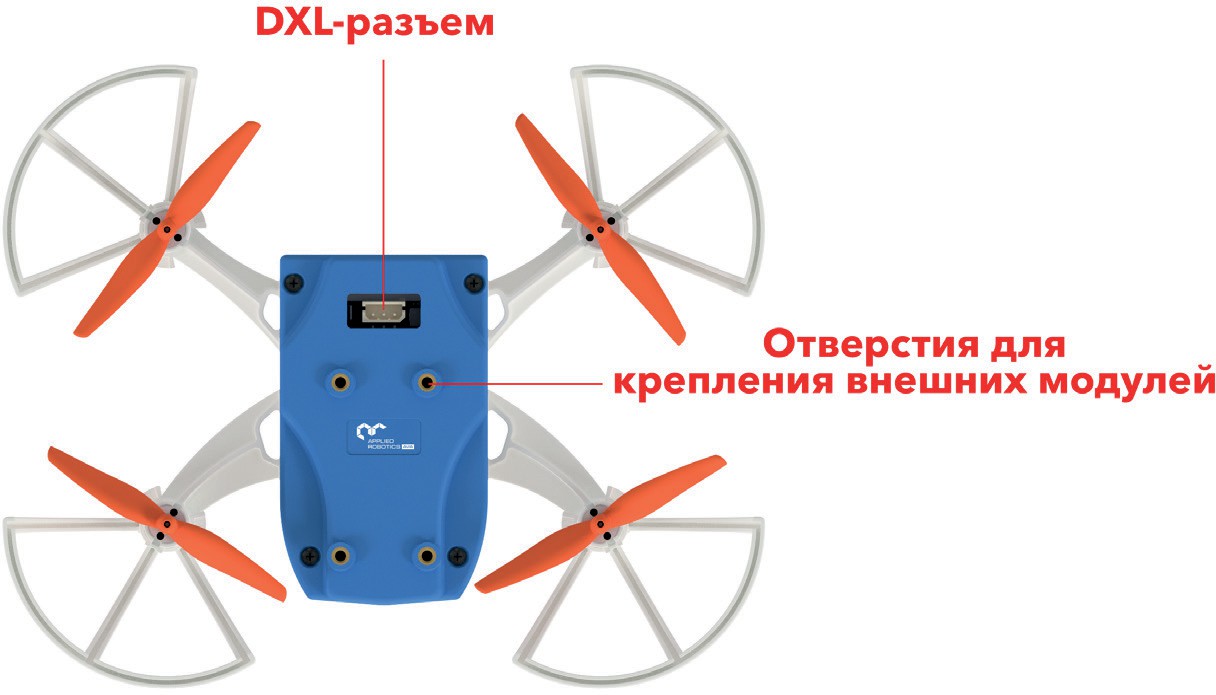 Обратите внимание, что микроквадрокоптер ARA Mini поддерживает подключение внешнего пульта управления, однако совместная работа внешнего пульта и шины DXL невозможна. Поэтому требуется замена встроенного программного обеспечения полетного контроллера в зависимости от задач (подробнее об обновлении в пункте 3.17, 3.18).
