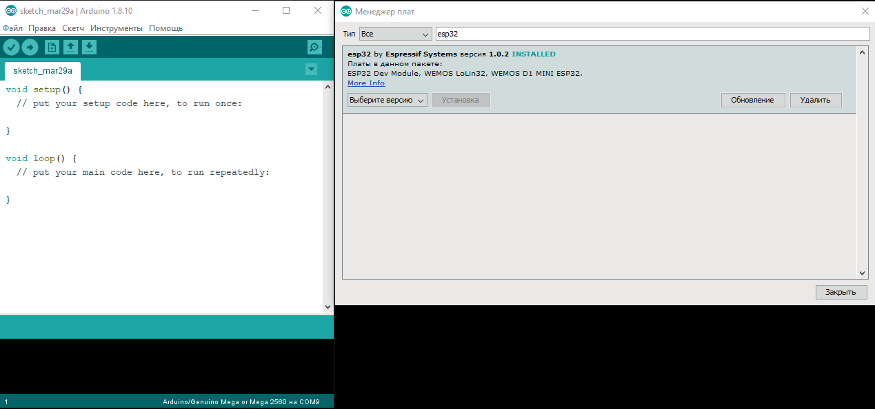 Рис. 2.2. Установка пакета поддержки плат семейства ESP32