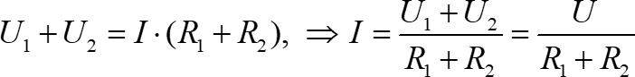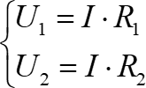 Воспользовавшись законом Ома \((U = I * R)\) для описания напряжений каждого из резисторов, имеем:
