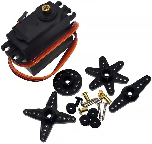 Сервопривод (Рисунок 15.1) — это исполнительный механизм, представляющий собой электродвигатель с управлением через отрицательную обратную связь, позволяющую точно управлять параметрами движения. Сервоприводом является любой тип механического привода, имеющий в составе датчик (положения, скорости, усилия и т.п.) и блок управления приводом, автоматически поддерживающий необходимые параметры на датчике и устройстве согласно заданному внешнему значению.