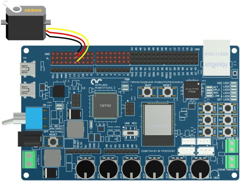 Рисунок 15.4. Подключение сервопривода к контроллеру КПМИС