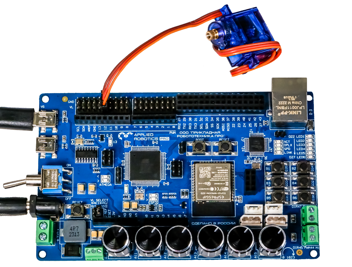 - Подключить потенциометр, и изменить программу так, чтобы серво- привод управлялся с помощью него.