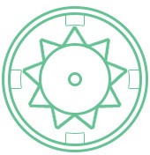 - Гибридный двигатель (Рисунок 16.3) (совмещает технологии двух предыдущих двигателей). Ротор выполнен в виде цилиндрического постоянного магнита, который намагничен по продольной оси. Конструктивно это выглядит как два круглых полюса, на поверхности которых рас- положены зубцы ротора из магнитомягкого материала. Такое решение позволило обеспечить отличный удерживающий и крутящий момент. Количество полных шагов в одном обороте таких двигателей зависит от количества постоянных магнитов на звезде ротора и от количества электромагнитов на статоре. Количество шагов в одном обороте таких двигателей может доходить до 400 (один шаг от 0,9°).