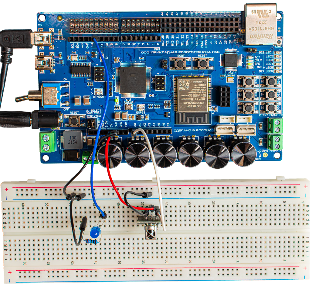 Замечание: Для работы ИК-приёмника необходимо подключить подходящую библиотеку, например iarduino_IR.