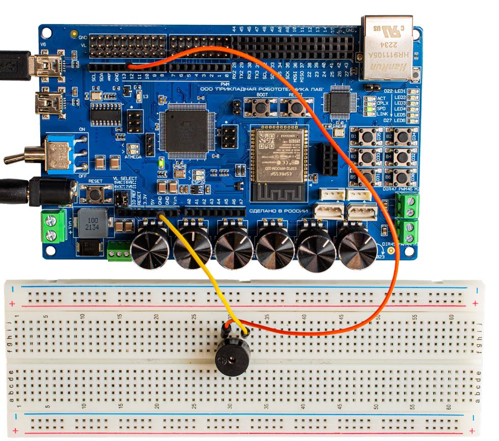 В данной лабораторной работе необходимо разработать управляющую программу микроконтроллера, способную менять частоту звучания пьезодинамика, при механическом повороте (вручную) ручки потенциметра. Для этого необходимо использовать функцию для создания прямоугольной волны tone().