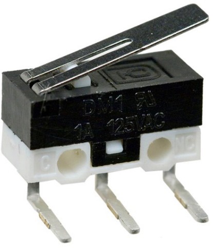 Существуют также кнопки с группой контактов, одни из которых разрывают цепь при нажатии на кнопку, а другие в это время цепь замыкают. Маленькие версии таких кнопок часто называют микропереключателями (Рисунок 7.1).