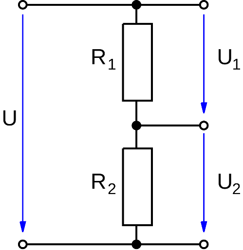 Потенциометр – это делитель напряжения из двух последовательно соединенных резисторов в одном корпусе. Устройство имеет три контакта: питание, земля и выход (Рисунок 3.1). Поскольку резисторы соединены последовательно, то через них проходит одинаковый ток. Поворотом ручки потенциометра меняется соотношение сопротивлений R1 и R2, благодаря чему изменяются напряжения каждого из резисторов. Рассмотрим подробнее этот принцип ниже.