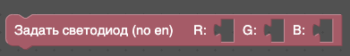 - Задать светодиод – задает значение для светодиода. Доступны Красные (R), Зеленые (G) и Голубые (B) каналы, можно использовать для информирования о каких-либо действиях (принимает значения от 0 до 255).