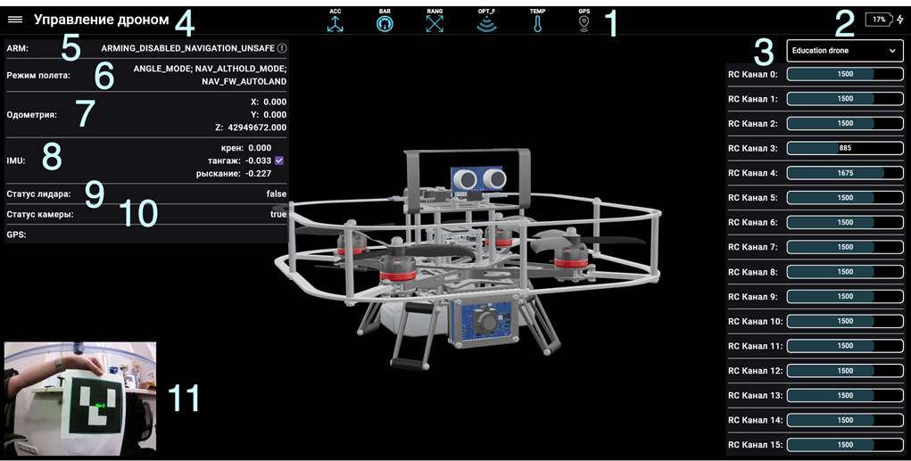 После обновления камеры и подключения ее к БПЛА можно приступать к работе с графическим интерфейсом.