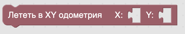 - Лететь в XY одометрия – полет в заданные координаты XY относительно точки включения дрона. При включении дрона и взлете выше 15 см начинается расчет относительной одометрии при помощи датчика Optical Flow, таким образом данная функция позволяет отправить дрон в координаты относительно точки взлета (X вперед, Y влево).