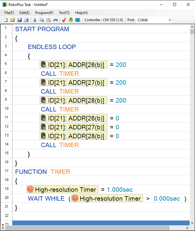 dxl_comm_result, dxl_error = packetHandler.write1ByteTxRx(portHandler, DXL_ID, 25, 1)