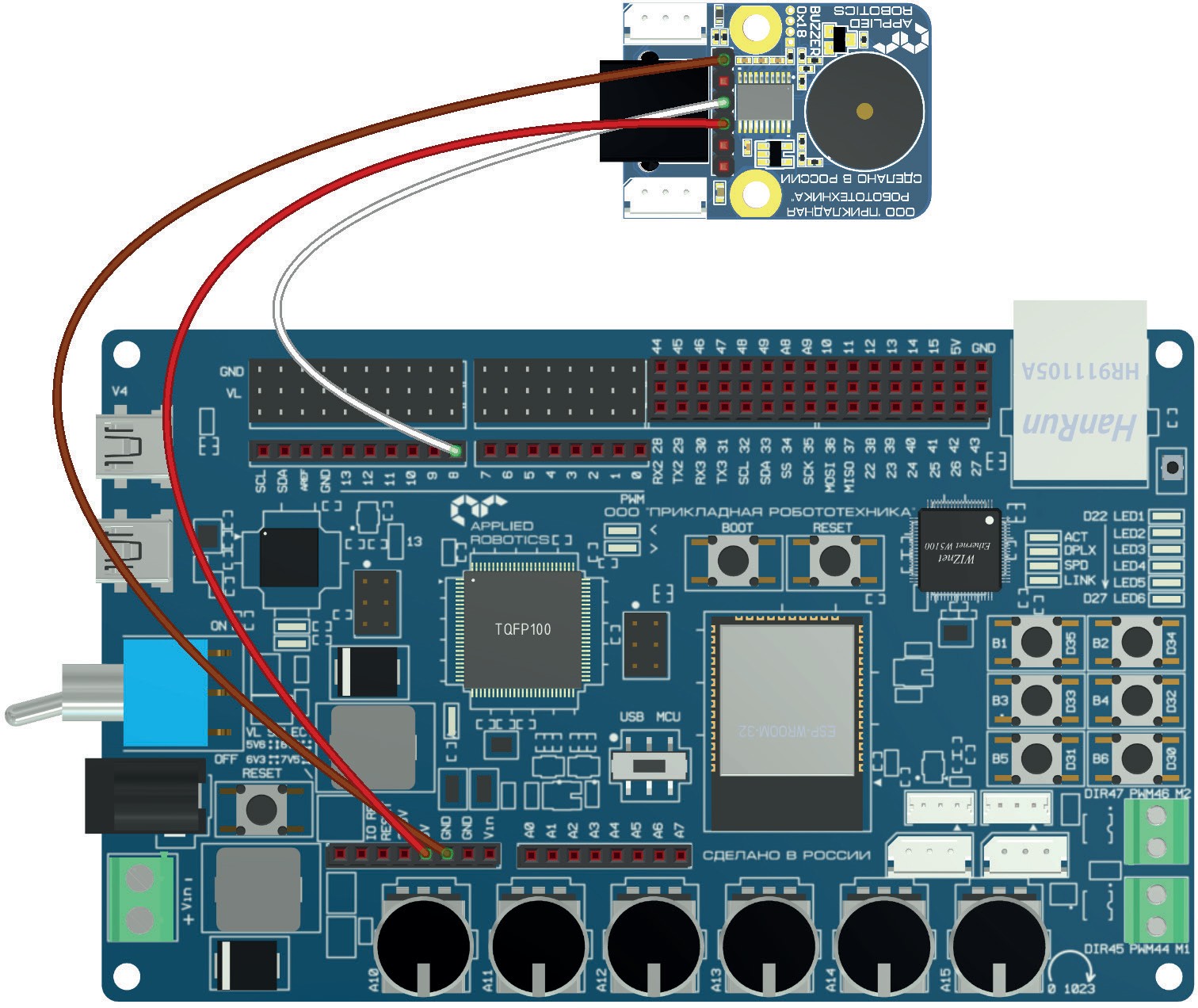 | 10 | Модуль «Звуковой пьезоизлучатель» | Передача на модуль | цифровой (PWM) |