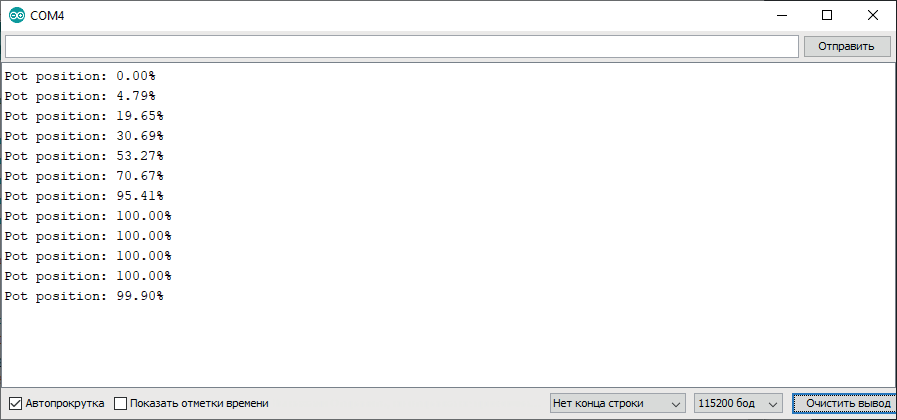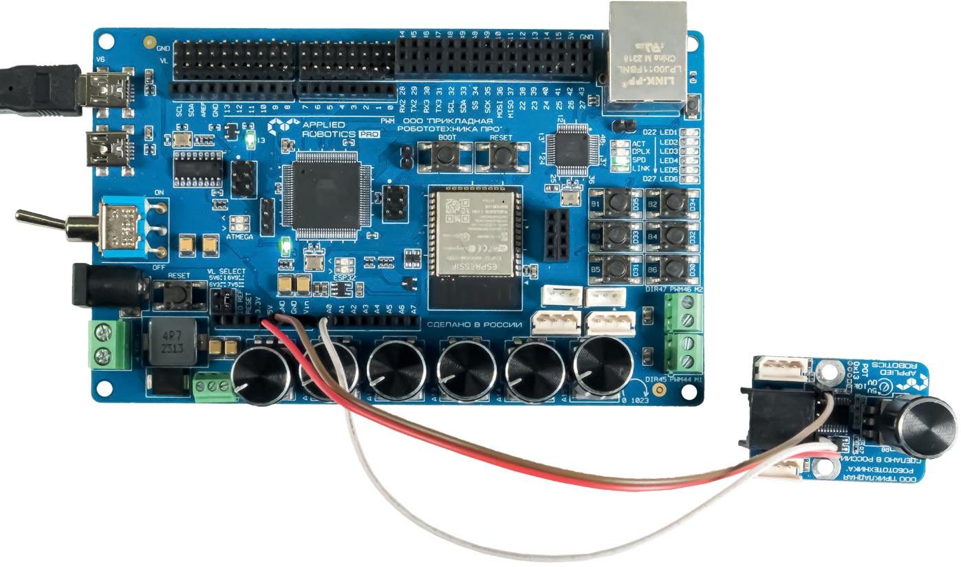 | 15 | Модуль «Потенциометр» | Чтение с модуля | аналоговый |