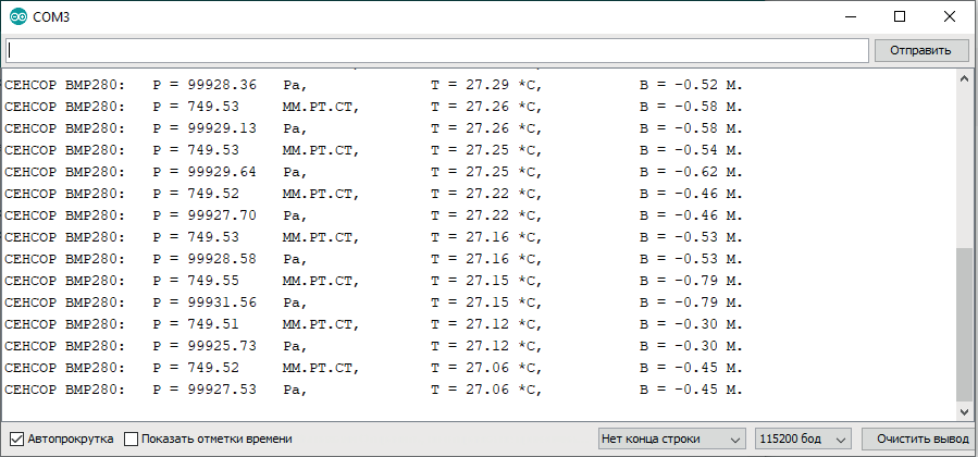 | 2 | Модуль «Датчик атмосферного давления» | Чтение с модуля | I2C |