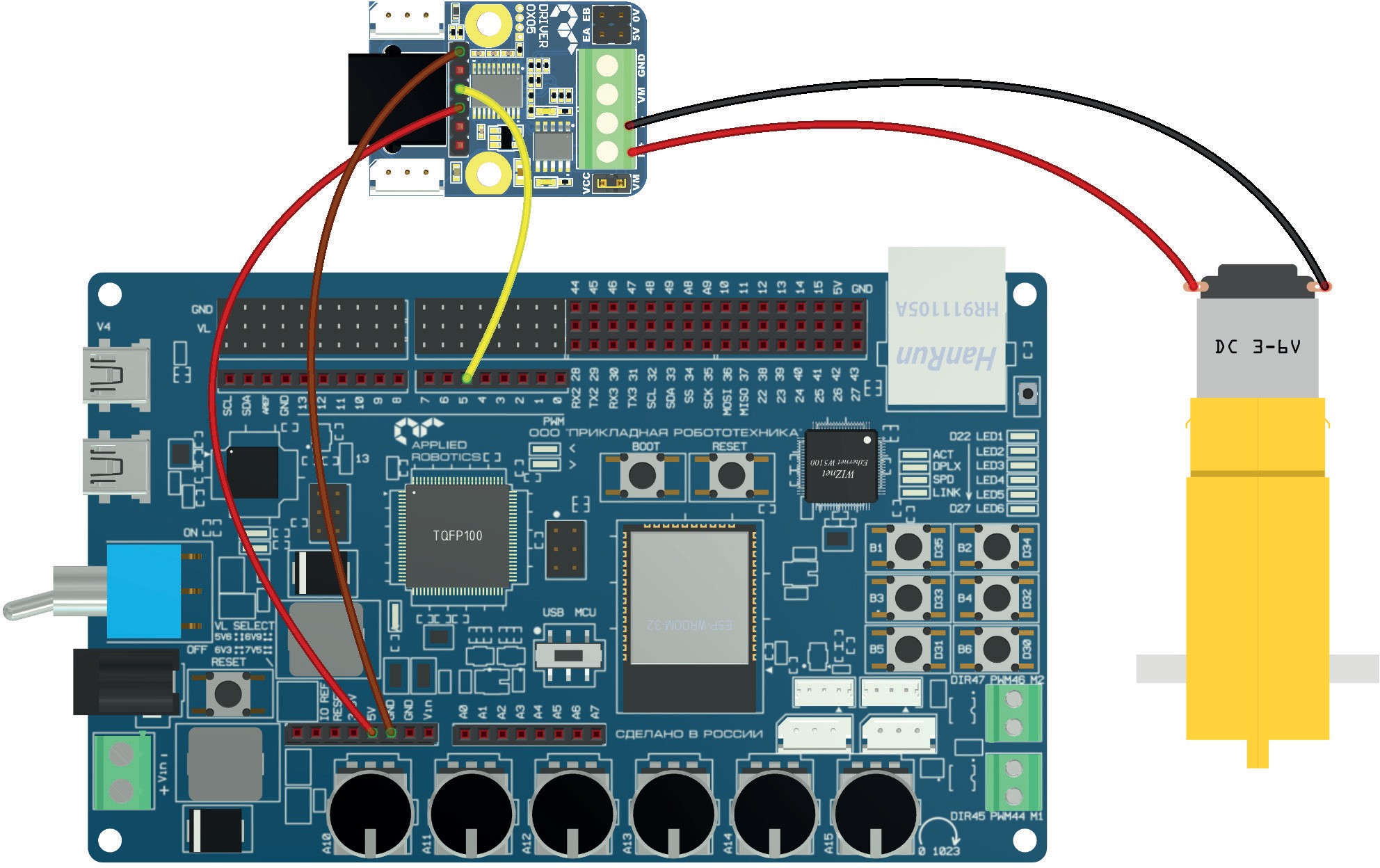 | 8 | Модуль «Драйвер двигателя постоянного тока» | Передача на модуль | прочее (цифровой + PWM) |