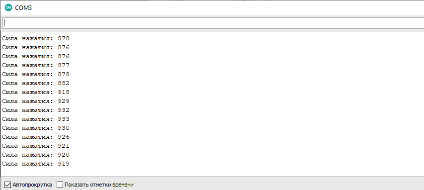 Рис. 2.3. Вывод в монитор порта информации о нажатии кнопки
