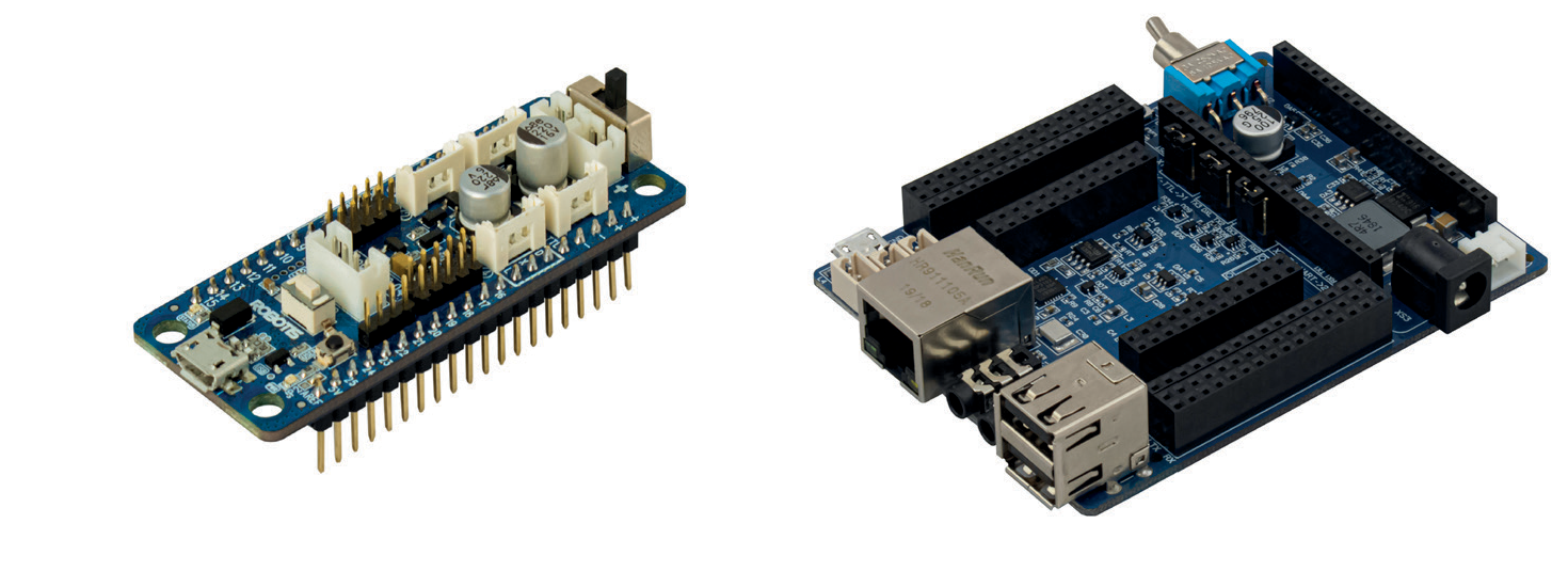 Сама плата поставляется в комплекте с периферийной платой STEM Board, расширяющей возможности контроллера OpenCM9.04.
