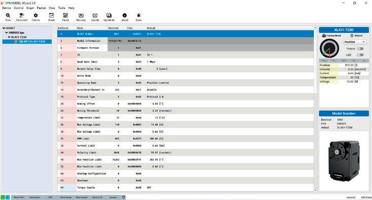 е. Программное обеспечение (Dynamixel Wizard 2.0) (рис. 4.6)