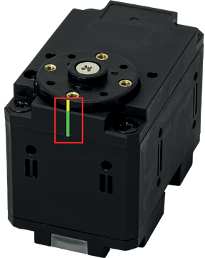 - Совмещенность одинарных рисок на корпусе и выходном валу сервоприводов. Если риски не будут совмещены, то придется проводить пересборку на этапе программирования, так как манипулятор не сможет корректно отрабатывать некоторые действия и команды (рис. 4.14).