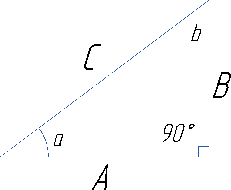 Итак, есть прямоугольный треугольник с катетами A и B, гипотенузой C и углами α(a), β(b) и 90°. Вопрос – как найти его углы? Конечно, можно воспользоваться транспортиром. Однако транспортир не всегда есть под рукой, да и точность такого измерения не слишком высока. Поэтому, были введены специальные функции, задающие зависимость углов прямоугольного треугольника от сторон (и наоборот), так как при изменении длин сторон неизбежно меняются и углы (и наоборот). Это простейшие тригонометрические функции – синус, косинус и тангенс. Задаются они следующим образом: