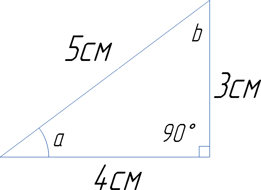 При наличии транспортира под рукой, можно поэкспериментировать в следующем коротком примере. Начертим прямоугольный треугольник размером 3х4х5см (рис.4.17):