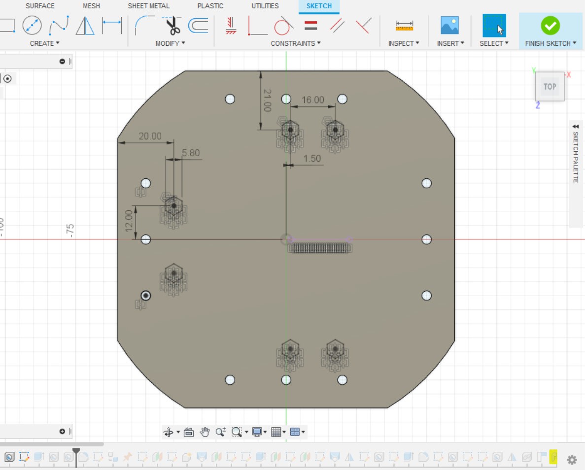 - Создаём эскиз для отверстий на верхней плоскости детали.