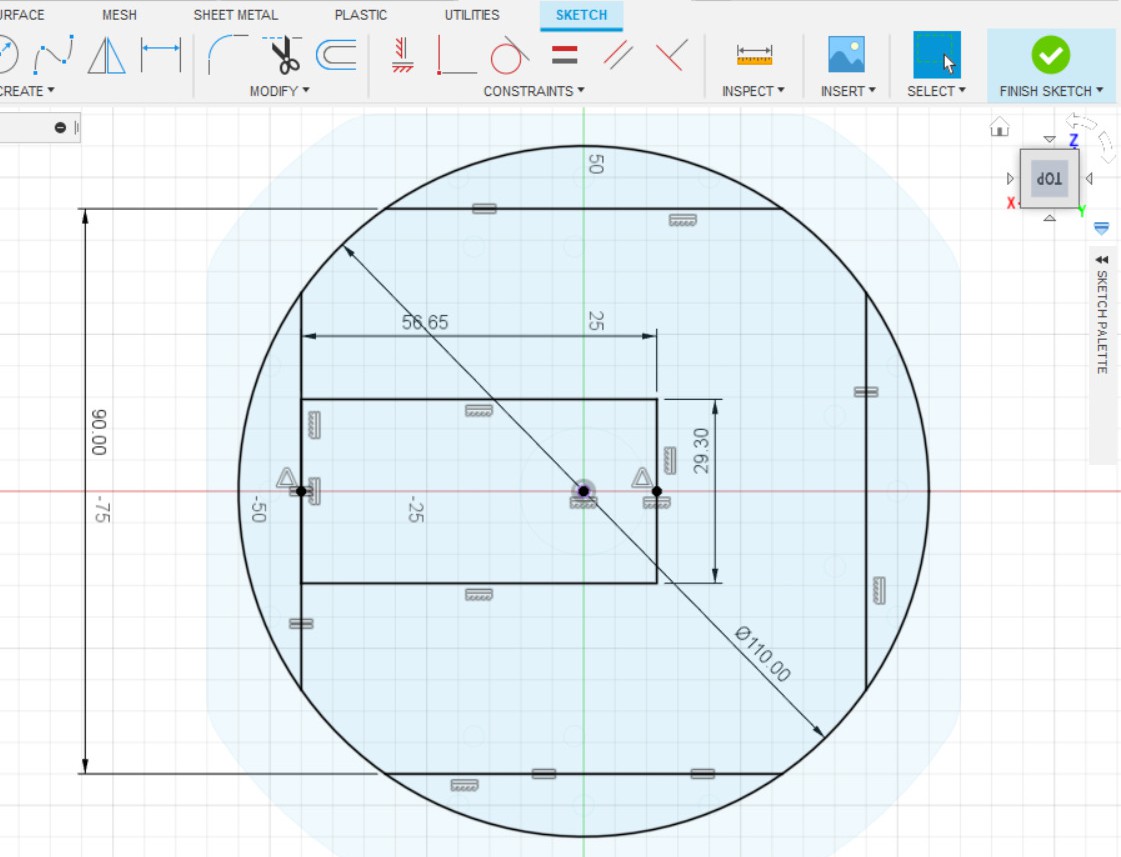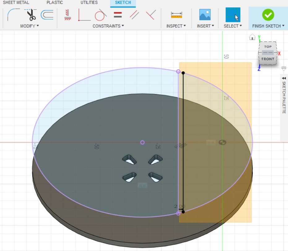 - Делаем эскиз на ранее созданной плоскости.