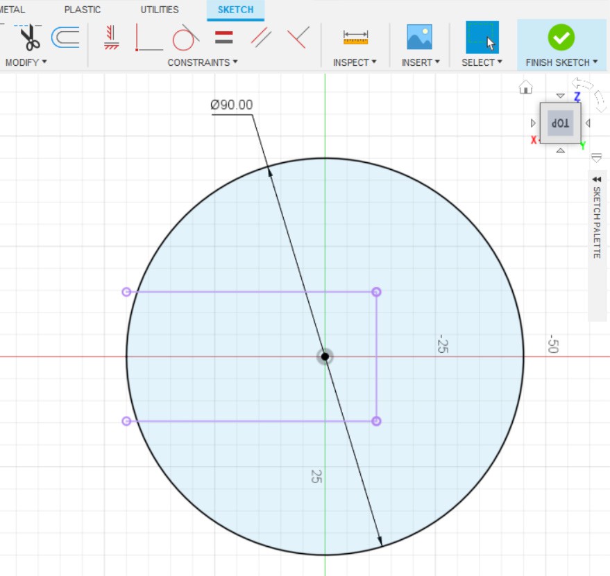 - Создаём эскиз, на плоскости, как показано на картинке.