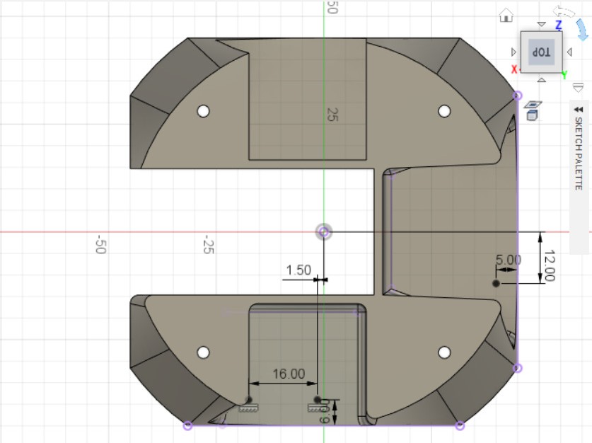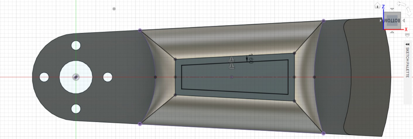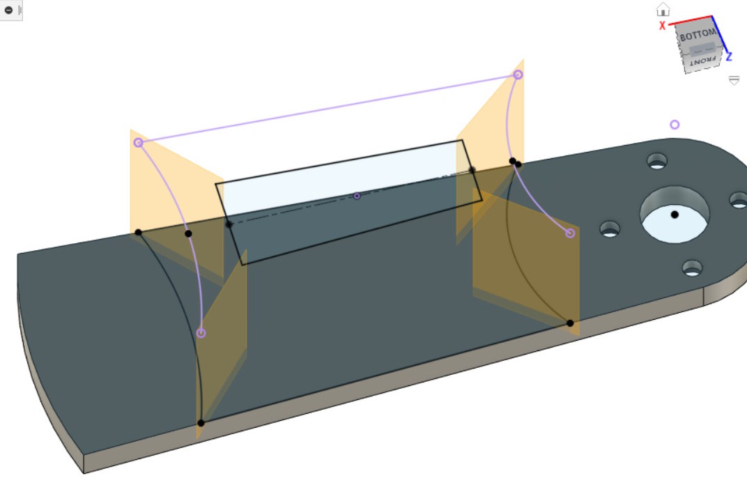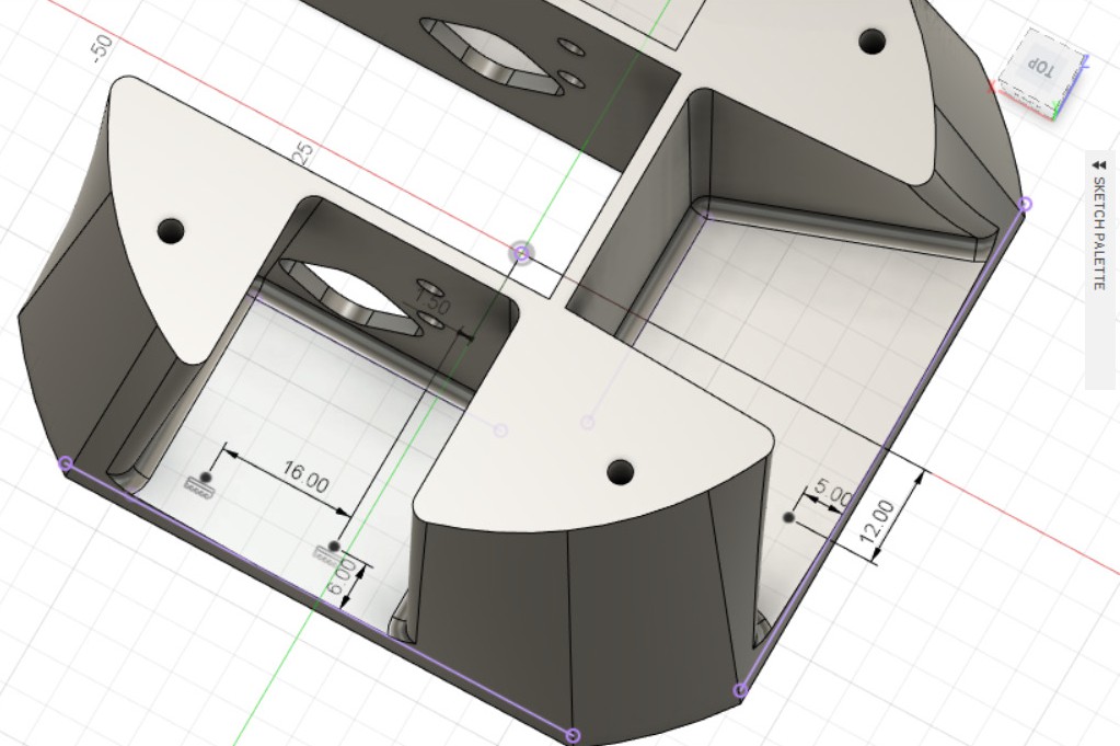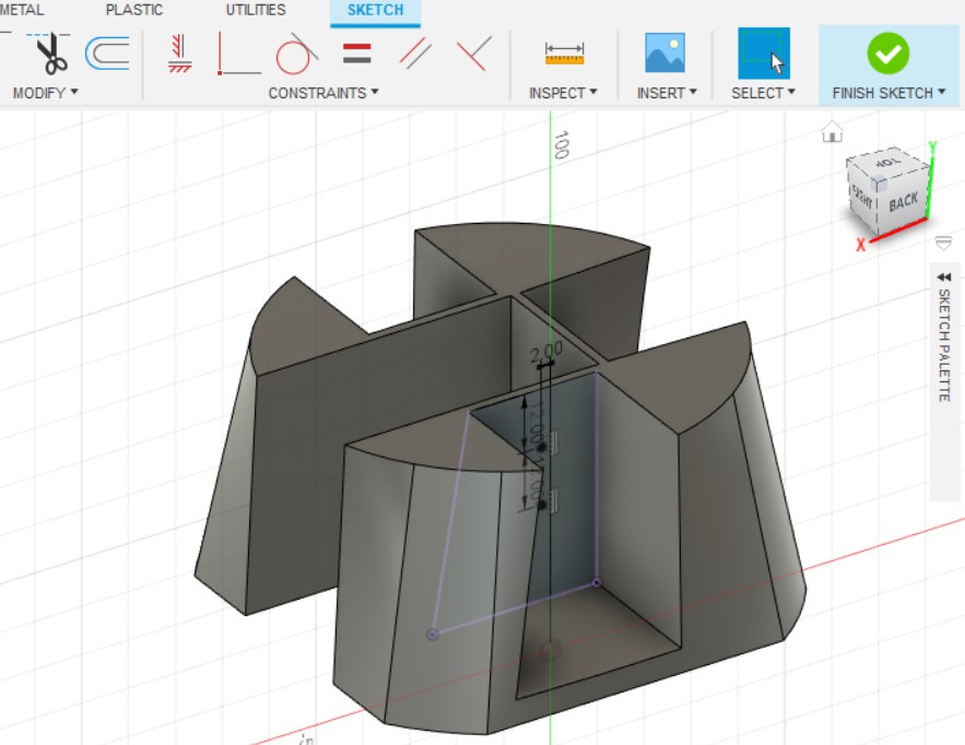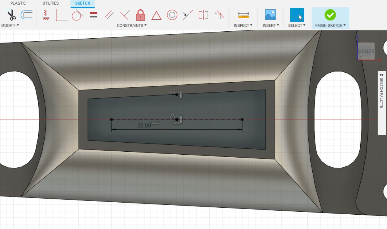- Создаём эскиз в получившемся углублении, на верхней части детали.