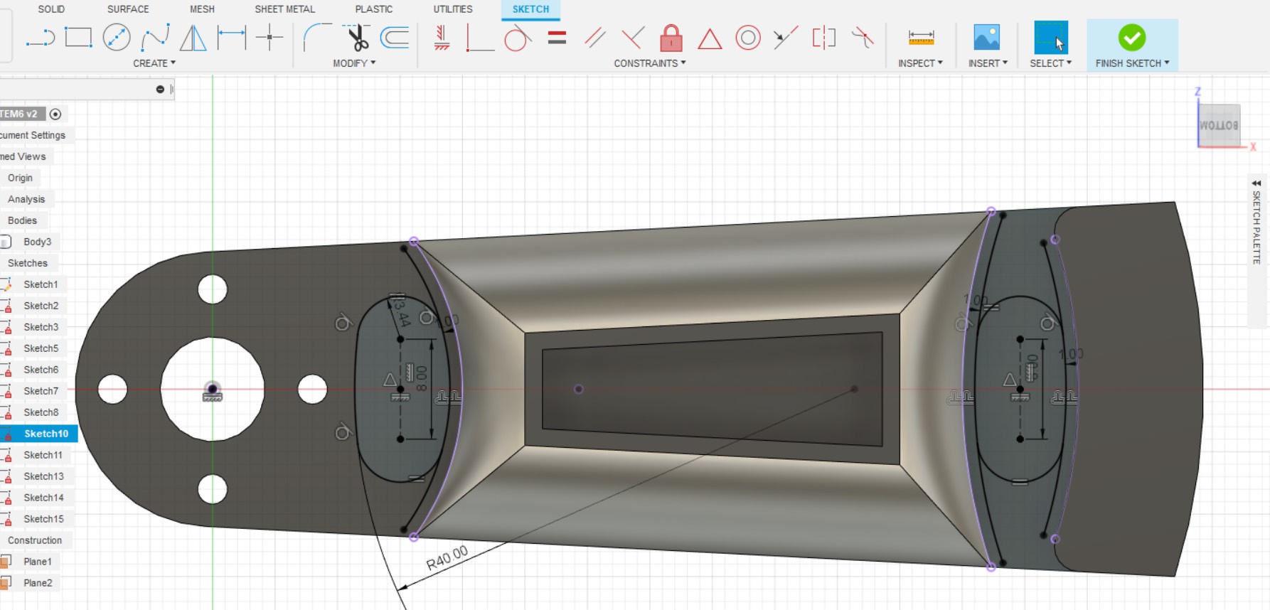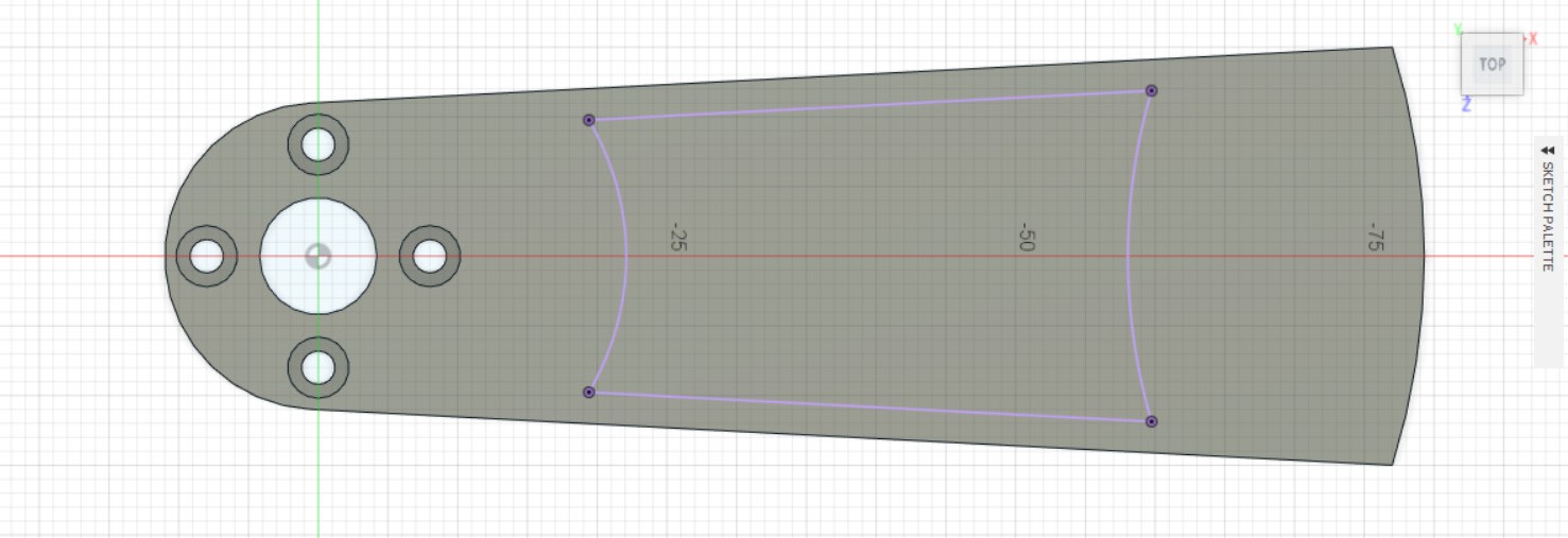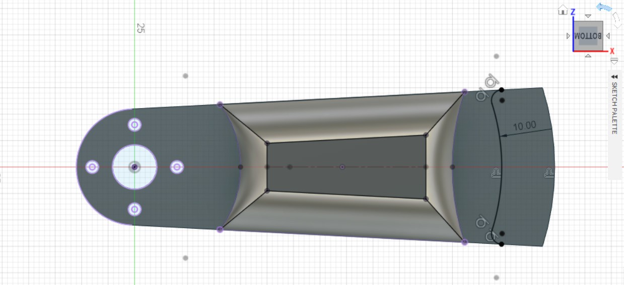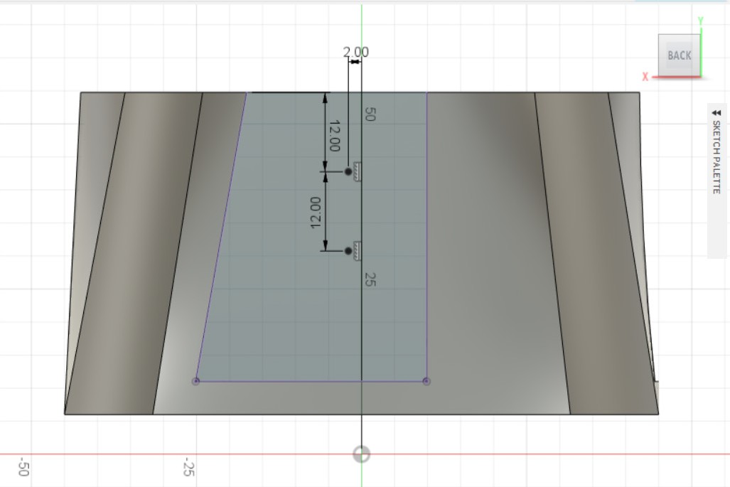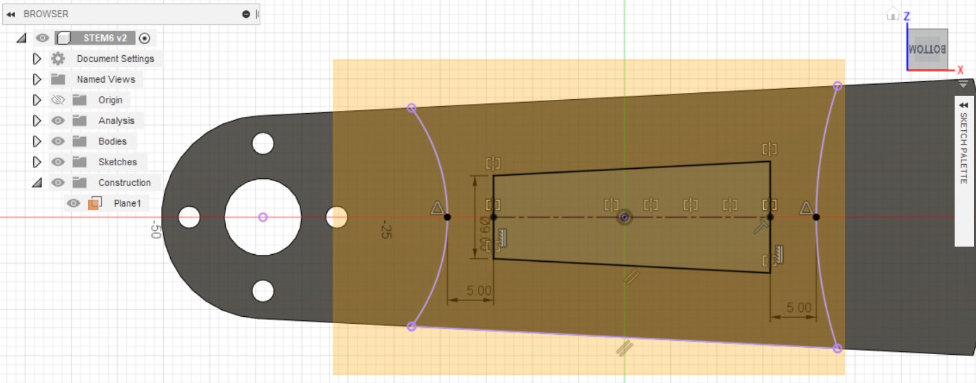 - Делаем эскиз на ранее созданной плоскости, вначале рисуем левую часть эскиза, после делаем отзеркаливание её при помощи инструмента Mirror.