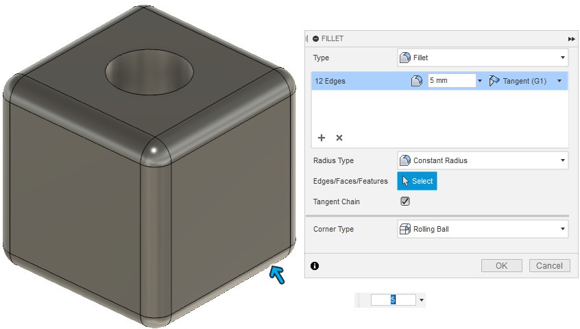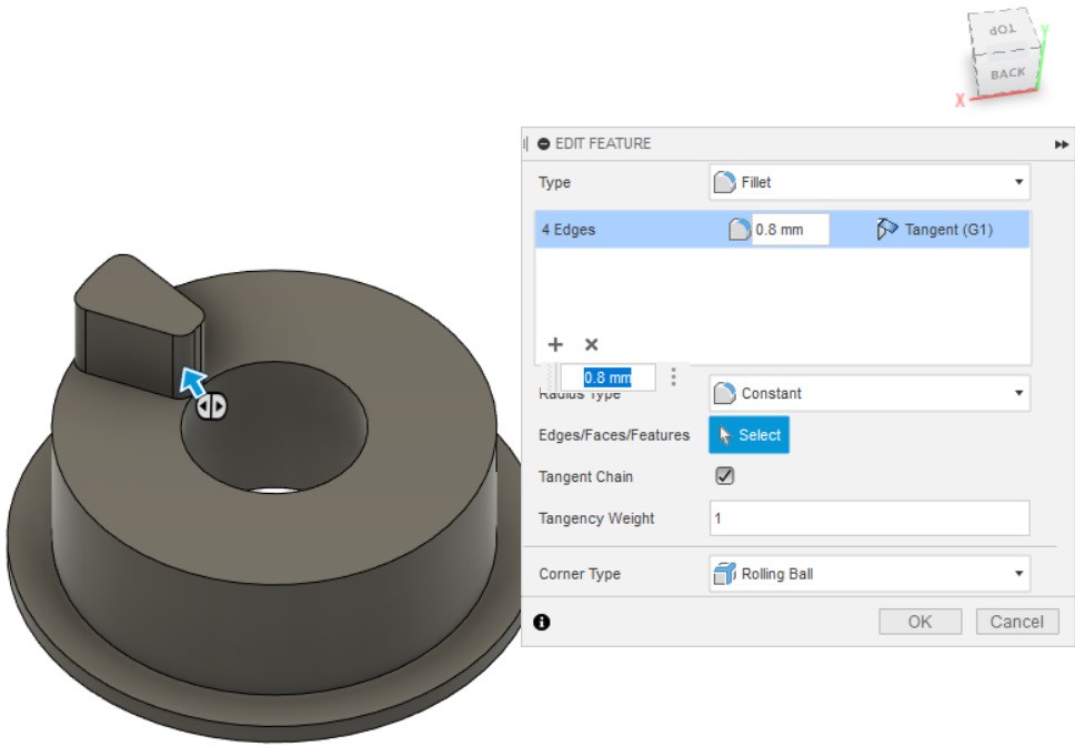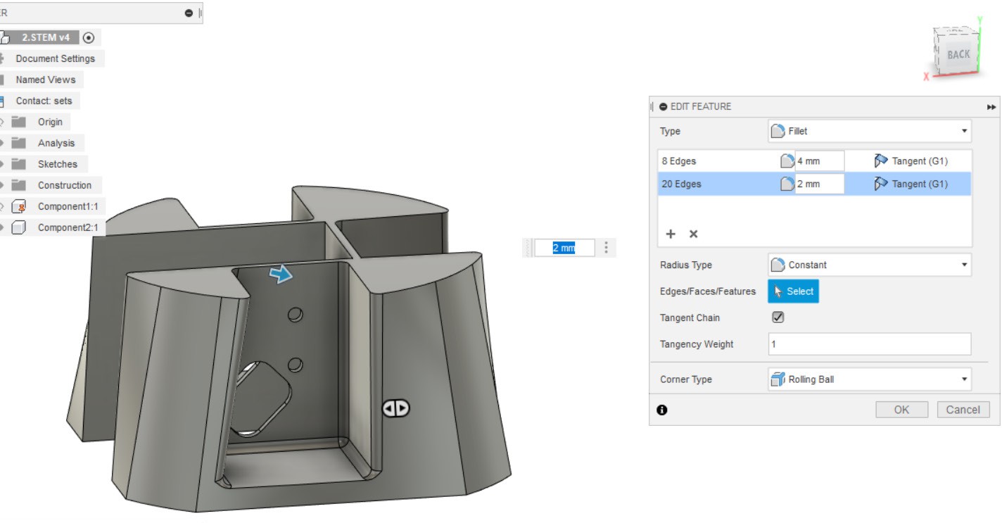 - Делаем скругления инструментом Fillet.