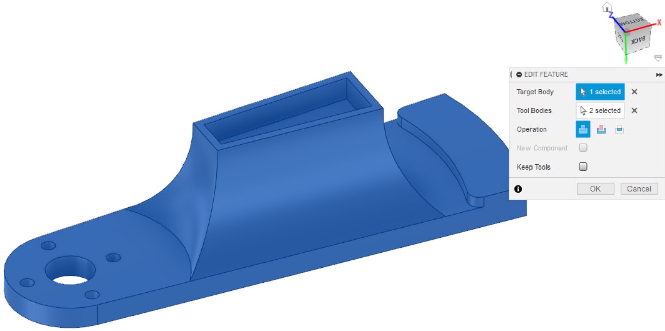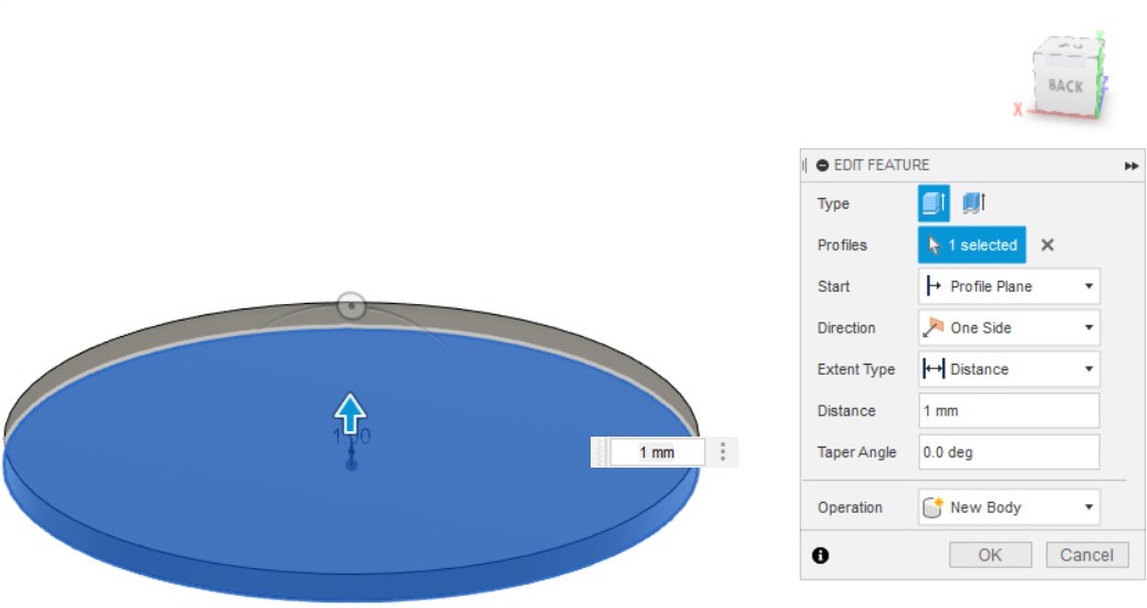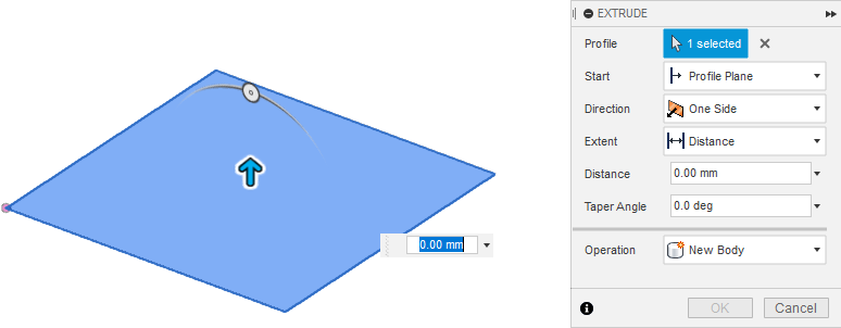 Operation. Выбор режима операции «Extrude». Данный параметр предлагает выбрать между созданием нового объемного тела и вырезанием части уже существующего.