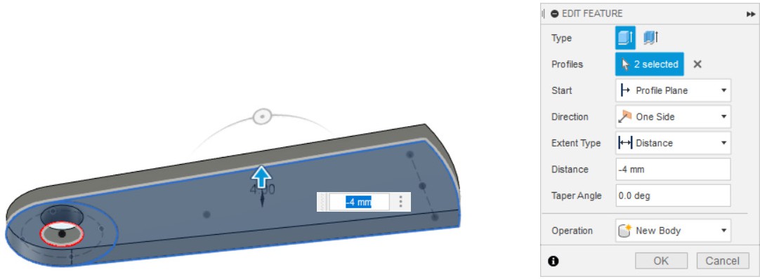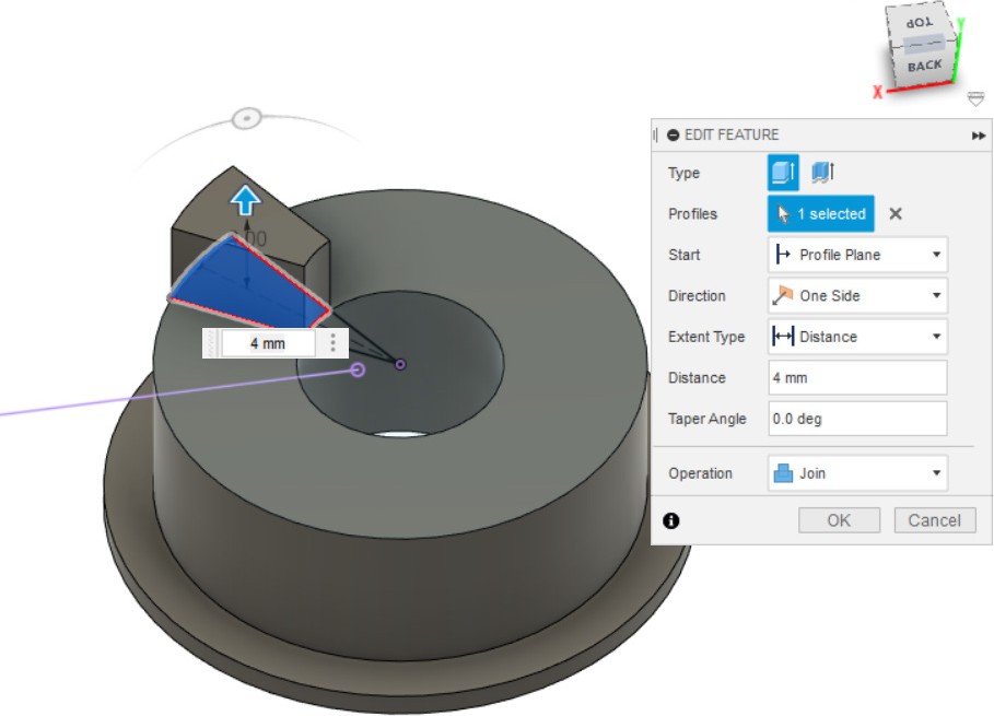 - Выдавливаем эскиз на 4 мм (Extrude).