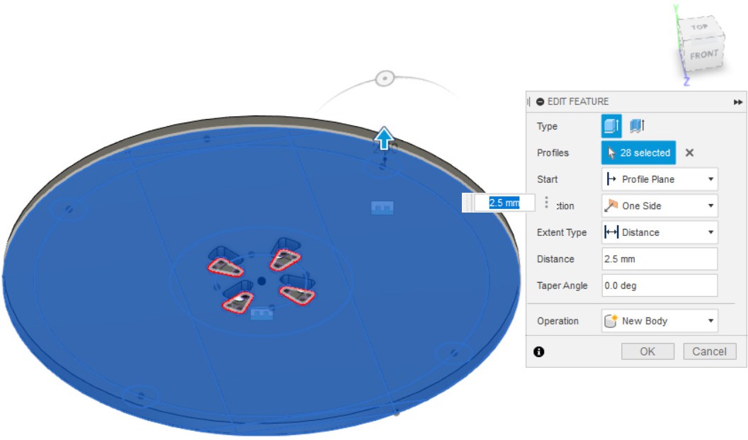 - Вытягиваем эскиз на 2 мм.