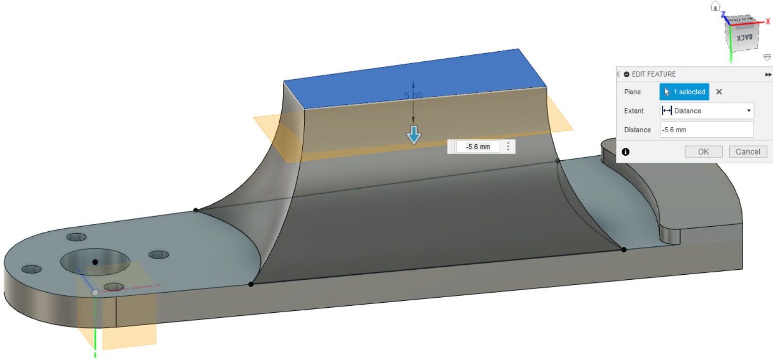 - Создаём дополнительную плоскость со смещением 5.6 мм, как показано на рисунке.