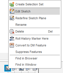 Сделать это можно и на текущем этапе, удалив операцию вытягивания окружности и эскиз с окружностью, зайдя в режим редактирования ранее созданного эскиза и начертив там окружность. Чтобы зайти в режим редактирования какой-либо операции или эскиза, необходимо в панели истории создания модели щелкнуть ПКМ по соответствующей операции и выбрать команду «Edit».