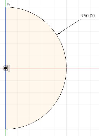 Создание шара аналогично созданию куба, за тем исключением, что при формировании модели будет применяться другая операция объема. Прежде всего необходимо создать эскиз, на котором с помощью операции дуги по центру и двум точкам (Arc->Center Point Arc, центр в начале координат) будет прорисована дуга. Ее концы будут соединены отрезком