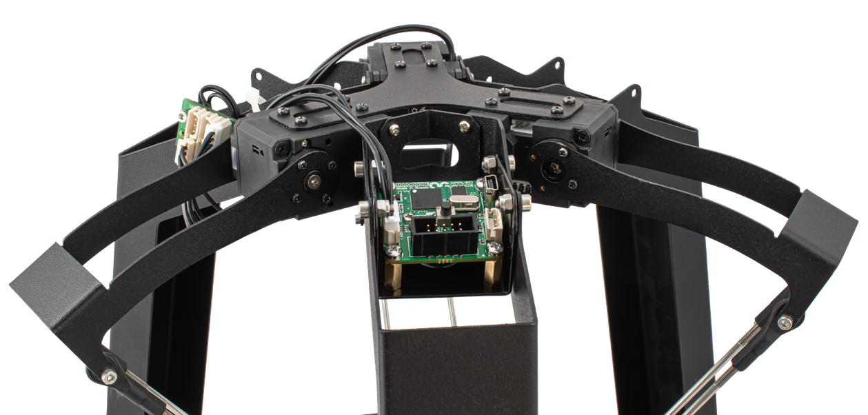 Манипулятор с Delta-кинематикой – вид параллельного робота, который состоит из трёх рычагов, прикреплённых посредством карданных шарниров к основанию. Ключевой особенностью является использование параллелограммов в конструкции манипулятора, что позволяет сохранять пространственную ориентацию исполнительного устройства робота.