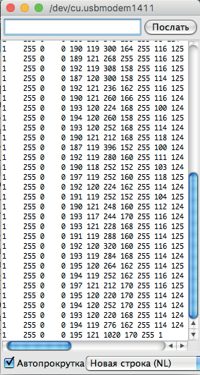 curAddr = curAddr + 2; SerialUSB.println(blob[i].bottom);Если полученный код запустить и открыть окно терминала, то результат будет аналогичен, представленному на рисунке 6.3.