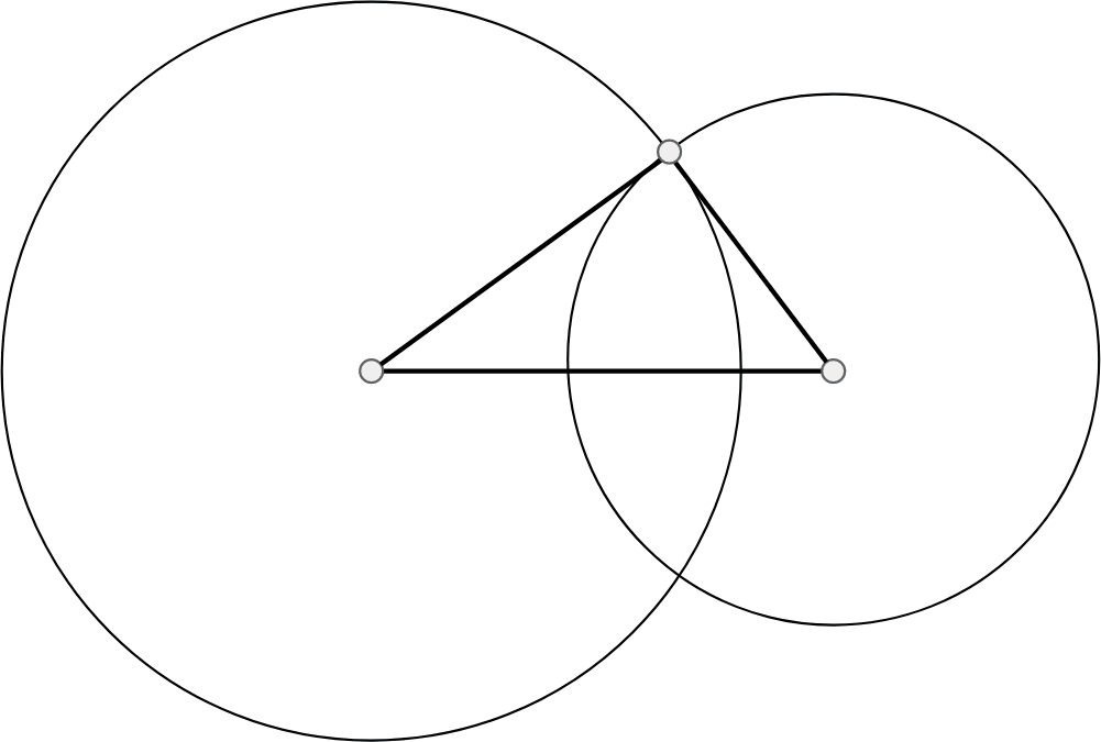 После этого проводятся две окружности с радиусами, равными длине соответственно второй и третьей сторон треугольника, и центрами, совпадающими с концами первой построенной стороны (Рис. 1.8).