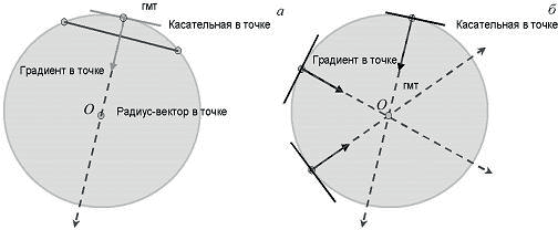Рис. 1.12. Принцип обнаружения окружности неизвестного радиуса на полутоновом изображении методом голосования