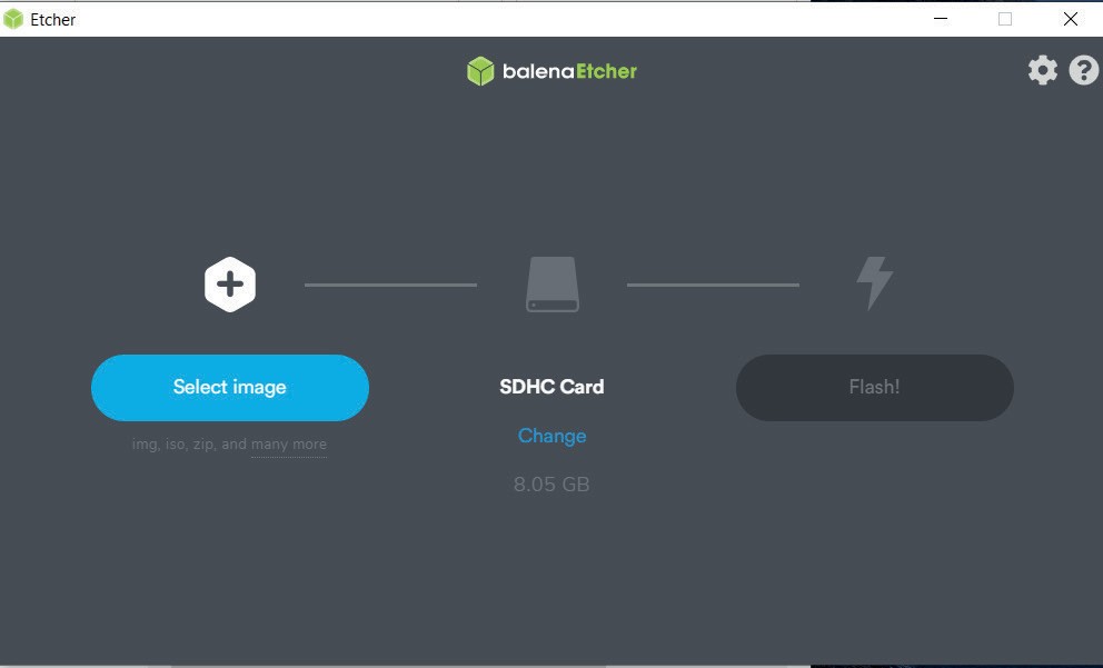 Для прошивки модуля TrackingCam v3 необходима одна microSD карта и программа BalenaEtcher (https://www.balena.io/etcher/). Нужно запустить программу BalenaEtcher и вставить microSD карту в компьютер: