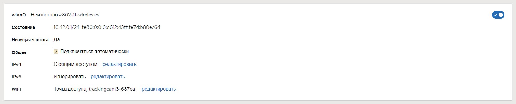 Рис. 3.9. Wi-Fi соединение, поднимаемое модулем TrackingCam v3