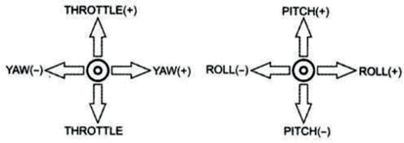 Throttle (Общий газ): Управляет общей вертикальной тягой квадрокоптера, позволяя ему подниматься или опускаться.