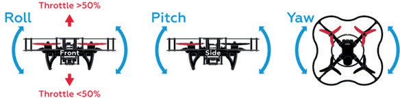 | Roll (Крен) | Крен относится к вращению беспилотника вокруг его продольной оси. Это движение позво-ляет дрону наклоняться из стороны в сторону. |
