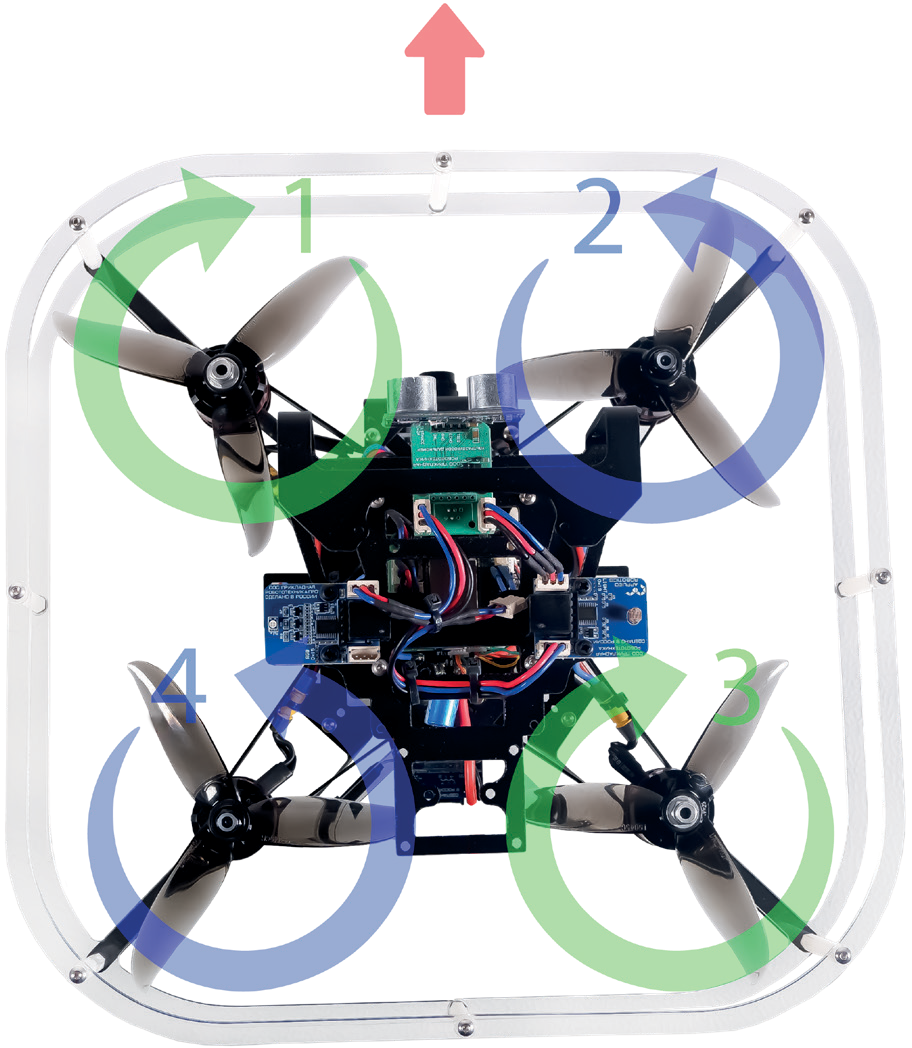 Крутящий момент, создаваемый двигателями, занимает важную роль в управлении квадрокоптером. Изменяя скорость вращения пропеллеров, можно управлять положением квадрокоптера в пространстве — поворачивать его на месте, делать боковые перемещения, или изменять высоту.