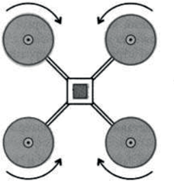 Существует три основных типа движения квадрокоптера: рыскание, тангаж и крен. Рассмотрим, как именно пропеллеры и двигатели влияют на каждое из этих движений (Рис. 2.4 и Рис. 2.5).